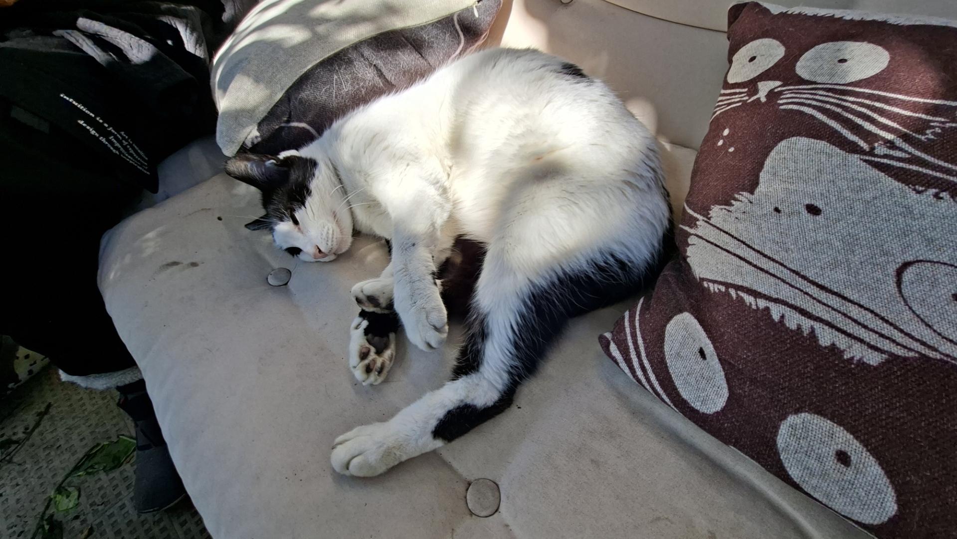 Issa the Other Asymmetric Cat is – just like Asy the Asymmetric Cat (our resident #caturday star) – a mostly white cat with a black asymmetric "hairdo".